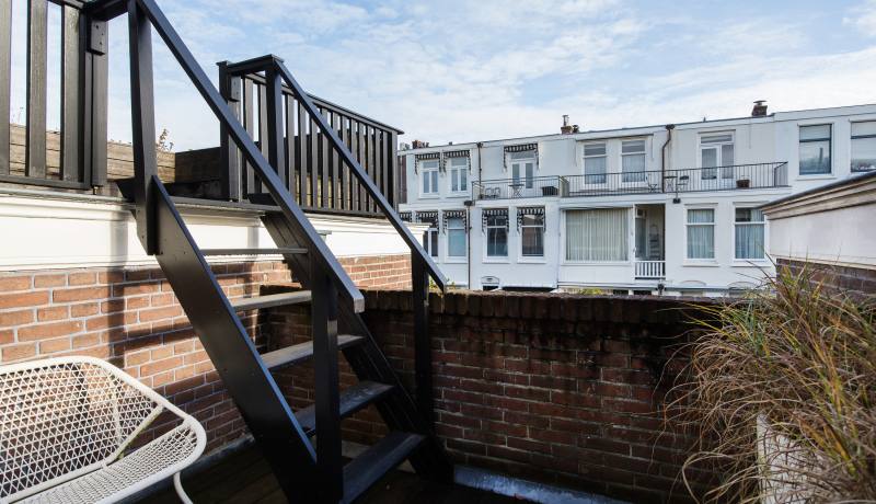Op de eerste verdieping liggen twee ruime slaapkamers, beide voorzien van royale inbouwkasten. De slaapkamer aan de achterzijde heeft bovendien toegang tot het heerlijke dakterras, een rustige plek waar je kunt genieten van de ochtend- of middagzon. Op deze verdieping bevindt zich ook de ruime badkamer, uitgerust met een ligbad, douche, toilet en een stijlvol wastafelmeubel.