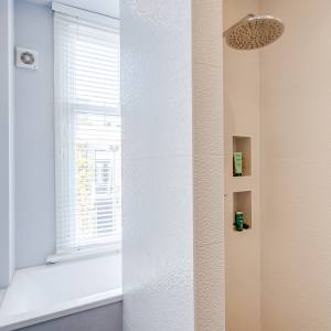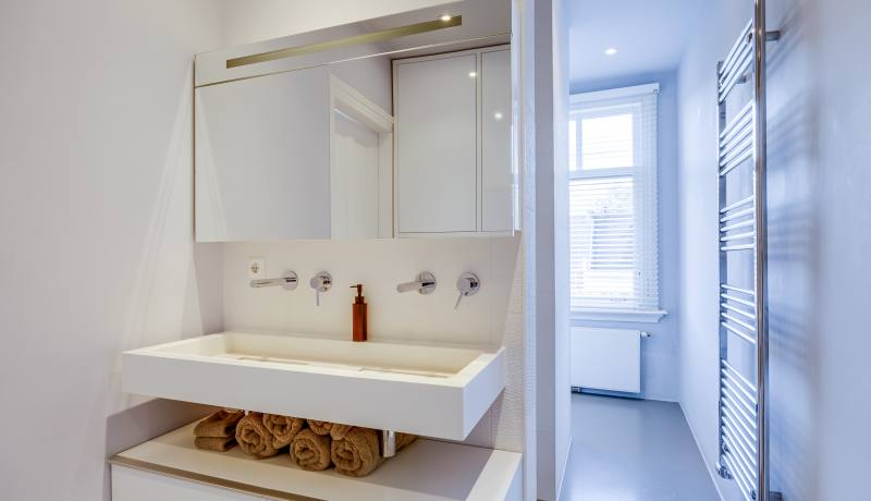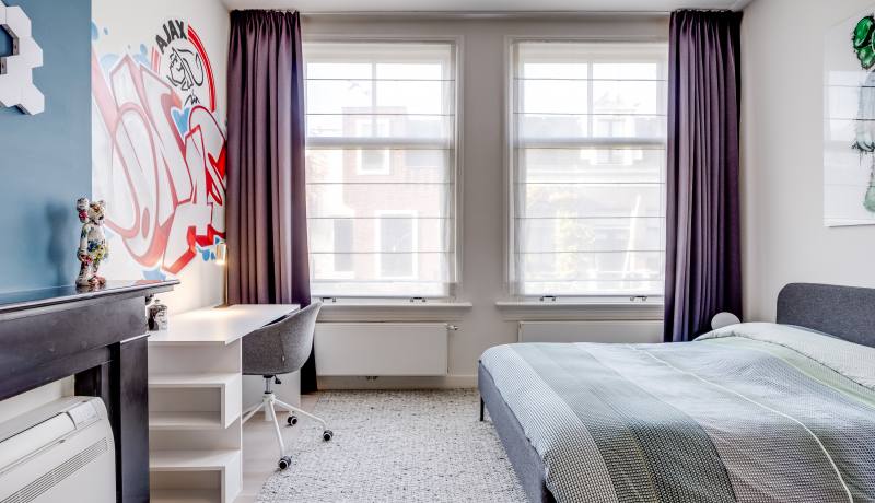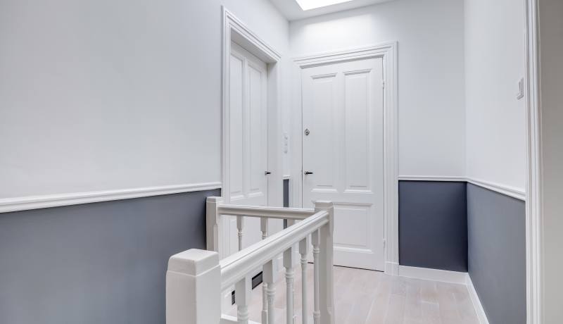 De tweede verdieping beschikt eveneens over twee grote slaapkamers, beide voorzien van praktische inbouwkasten. Daarnaast vind je hier de tweede badkamer, compleet met dubbele wastafel, douche en toilet. Hierdoor is deze verdieping uitstekend geschikt voor gezinnen, gasten, au pairs of werken aan huis.