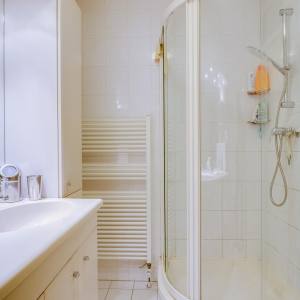 Overloop, bergkast met CV-ketel, keurige badkamer met ligbad, inloopdouche en dubbele wastafel, apart toilet en drie slaapkamers.