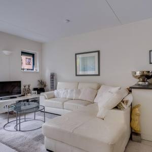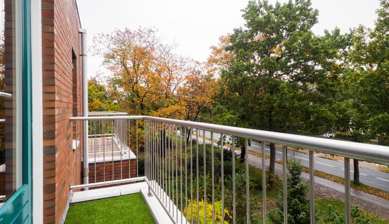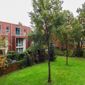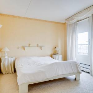 Landing with spacious access to living room. The living room is beautifully spacious and special because of the abundance of light from the floor-to-ceiling and wide windows. The living room looks out over the green surroundings. The room at the front is used as a master bedroom with French balcony.