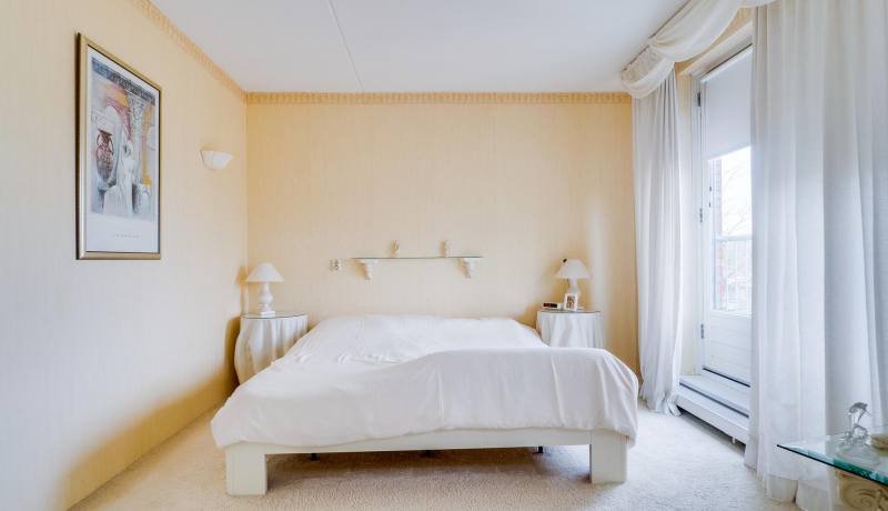 Overloop met ruime toegang tot woonkamer. De woonkamer is mooi royaal en bijzonder door het vele licht van de kamerhoge en brede ramen. De woonkamer met kijkt ver uit over de groene omgeving. De kamer aan de voorzijde is in gebruik als master bedroom met Frans balkon.
