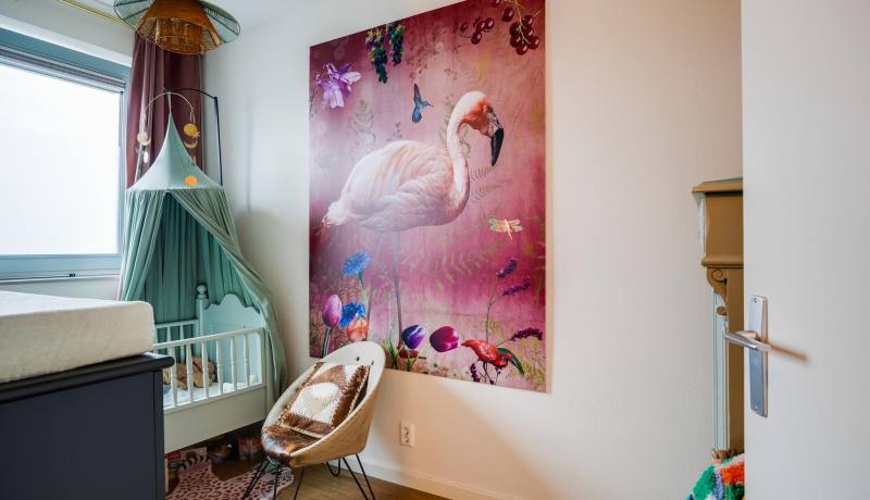 Via de gezamenlijke afgesloten entree kom je met de trap of met de lift op de derde verdieping bij de eigen voordeur van het appartement. Via de voordeur loop je de hal van het appartement binnen waar je zowel aan de linker- als aan de rechterkant een ruime en nette slaapkamer treft. Van deze slaapkamers is de rechter met een afmeting van 12 m2 de masterbedroom. De linker slaapkamer met een afmeting van 8 m2, is nu in gebruik als babykamer, maar ook uitstekend te gebruiken als werk- of logeerkamer.