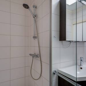 2e verdieping: overloop, slaapkamer aan de achterzijde, slaapkamer aan de voorzijde en een fraaie badkamer met toilet, inloopdouche en badkamermeubel.