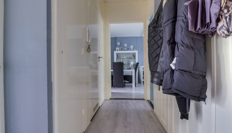 Entree gebouw via gesloten portiek met bellenplateau en intercominstallatie, hal, trappenhuis en liftinstallatie. Eigen berging in de onderbouw.