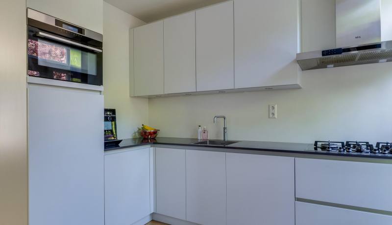 In de woonkamer komt veel daglicht naar binnen door de grote raampartijen aan zowel de voor- als achterzijde. Vanuit de woonkamer heeft u toegang tot de moderne complete open keuken (2017). Deze keuken is voorzien van diverse inbouwapparatuur: quooker, vaatwasser, 5-pits gaskookplaat (voorbereid voor eventueel inductie koken) met afzuigkap, koelkast met separate vriezer, vaatwasser en combi-oven-magnetron.