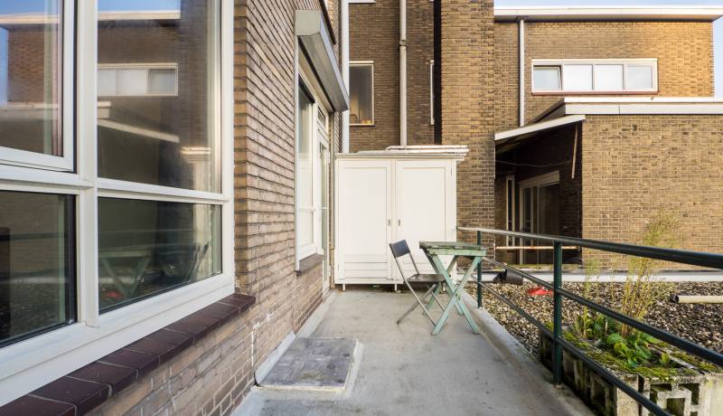 De badkamer is voorzien van een douche en wastafelmeubel. Er is een apart toilet. De keuken is netjes en voorzien van een koelkast met vriesvak, vaatwasser, combi-oven en een gaskookplaat. Via de keuken bereik je het ruime balkon (8.21 X 1.69) gelegen op het oosten. Hier heb je een leuk zicht op de stad en merk je niets van de drukte van de binnenstad.