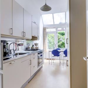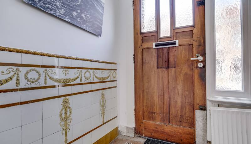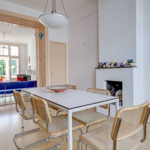 Entering through the front door, you arrive in a spacious hallway with original details and a staircase. The beautiful living and dining room retains its original en-suite sliding doors, ornamental ceilings, and fireplace. At the rear, French doors connect the indoors with the garden. The neat kitchen adjoins a bright conservatory with additional seating and a second access to the garden – a lovely spot to enjoy the outdoors year-round.