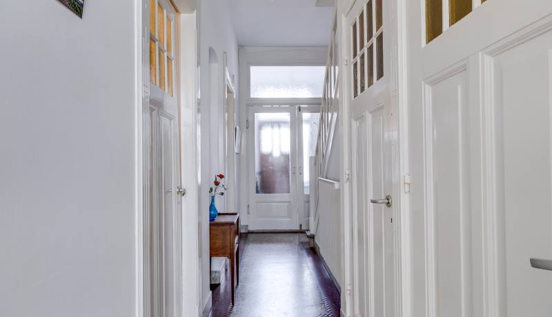 Via de voordeur stap je binnen in een ruime hal met originele details en een trapopgang. Een prachtige ruime woon- en eetkamer, met de originele kamer-en-suite schuifdeuren, ornamenten én een open haard. Aan de achterzijde zorgen openslaande deuren naar de tuin voor een mooie verbinding tussen binnen en buiten. De keuken is netjes en grenst direct aan de lichte serre met extra zitruimte en tweede toegang tot de tuin. Een fijne plek om het hele jaar door te genieten van het buitengevoel.