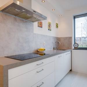 Ruime woonkamer met een moderne, open keuken. De woonkamer heeft een lengte van bijna 11 meter en een breedte van ruim 5 meter. Daarmee biedt het je voldoende ruimte om in te delen. De keuken ligt aan de voorzijde en is voorzien van alle denkbare inbouwapparatuur. De gehele keuken is recent vernieuwd. Je hebt veel werkruimte en met het grote raam aan de voorzijde is het heerlijk licht in je keuken. Ook heb je een handige trapkast voor extra opbergruimte voor bijvoorbeeld je stofzuiger en andere zaken. Aan de achterzijde heb je een schuifpui naar de achtertuin.