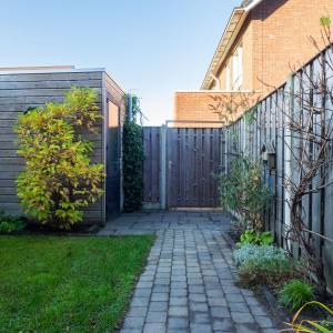 Entree/hal, toilet met fonteintje, lichte woonkamer met toegang tot de bijna 13 meter diepe achtertuin met vrijstaande schuur en achterom, moderne open keuken voorzien van diverse inbouwapparatuur, ruime trapkast, trapopgang naar