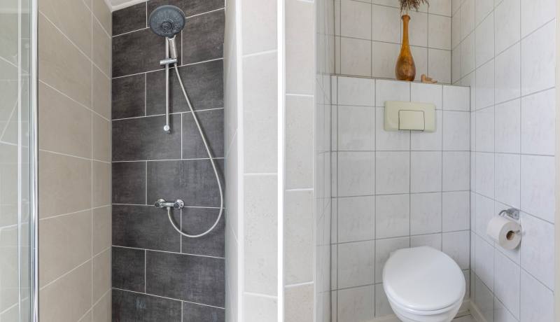 - Eerste verdieping: overloop met inbouwkast, twee slaapkamers waarvan één eenvoudig te splitsen is in twee kamers, badkamer met douche, toilet en wastafel.