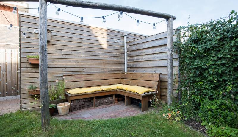 At the rear you have sliding doors to your garden. The garden is located on the west and the sun shines here from noon until the evening. There is also a back entrance and a detached storage room for bicycles and garden equipment.