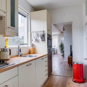 Achter de woonkamer ligt de keuken welke voorzien is van alle denkbare inbouwapparatuur. De keuken is netjes en voorzien van een groot raam voor voldoende lichtinval. Achter de keuken ligt een modern toilet welke in 2018 is vernieuwd.