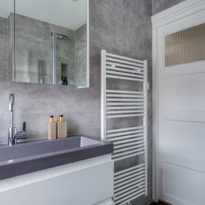 Eerste verdieping: Overloop met toegang tot de twee slaapkamers en badkamer. De slaapkamer aan de voorzijde heeft handige inbouwkast. Daarbij is er ook een aparte ruimte voor de wasmachine aansluiting. De andere slaapkamer ligt aan de achterzijde. De vernieuwde badkamer (2018) is bijzonder ruim en modern. Mooie, grote grijze tegels en voorzien van een ligbad, inloopdouche, tweede toilet en wastafelmeubel. Voor extra daglicht en ventilatie is er een raam.