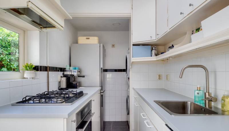 keurige keuken aan de achterzijde eveneens met toegang tot de tuin, trapopgang naar