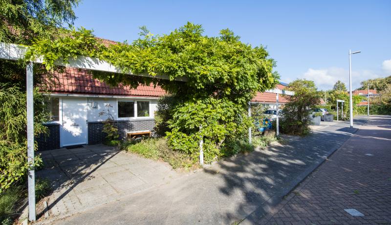 - Voortuin met parkeerplaats en zonnige patio op het zuidwesten