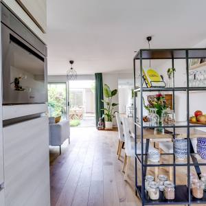 - Begane grond: Entree/hal, toilet, trapopgang, lichte woonkamer met toegang tot zonnige patio, open keuken met inbouwapparatuur (2015), moderne badkamer (2020) met ligbad, douche, toilet, dubbele wastafel en vloerverwarming.