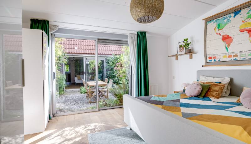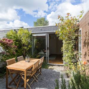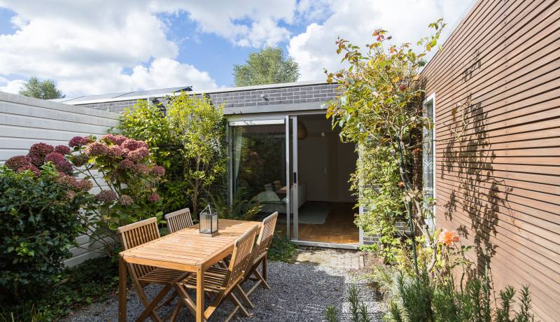 Bij aankomst parkeer je gemakkelijk op je eigen oprit in de voortuin, waar je ’s ochtends al kunt genieten van de zon. De tuin is groen, vlinder- en bijvriendelijk en ingericht zodat er het hele jaar door iets bloeit, een kleurrijk welkom!