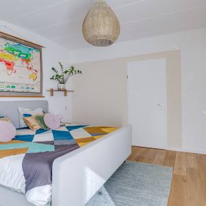 Op de eerste verdieping vind je meerdere slaapkamers, waarvan kamers eenvoudig zijn samen te voegen of juist te splitsen. Dit biedt volop mogelijkheden: een extra grote slaapkamer, een logeerruimte, of zelfs een studio met eigen badkamer, perfect voor bijvoorbeeld een au pair, (oudere) kinderen of gasten. Een vliering is perfect mogelijk.