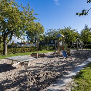 Nearby, you’ll find the beautiful Máximapark, perfect for sports, walking, or simply enjoying nature. The area has plenty of playgrounds (some with cafés), cozy eateries, and even a communal orchard right in front of the house, where residents maintain fruit trees together with the municipality and can pick unsprayed fruit.