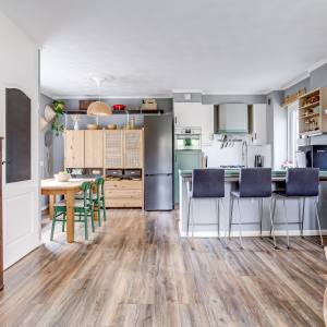 At the rear, you’ll find the semi-open kitchen area, with ample possibilities for a modern kitchen setup and lots of natural light from the large windows. Adjacent is the dining room, ideal for those who love hosting guests.