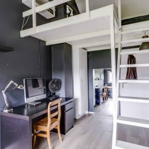 Second Floor, Two additional bedrooms, one with a mezzanine and fixed staircase, plus a second bathroom with a bathtub and washbasin—perfect for a large family or guests.