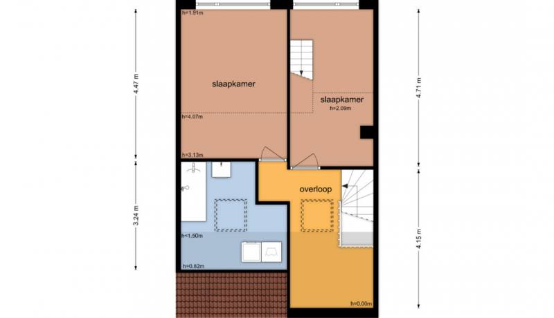- Tweede verdieping: Overloop, twee slaapkamers, tweede badkamer met ligbad en wastafel
